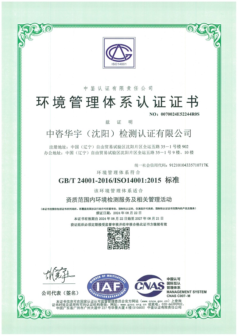 環(huán)境管理體系認(rèn)證證書(shū)