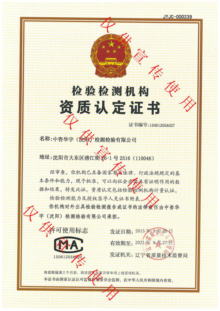 遼寧中咨華宇環(huán)保技術(shù)有限公司于2015年投資成立了中咨華宇(沈陽)檢測檢驗有限公司。通過前期實驗室的規(guī)劃布局,購置檢驗儀器設(shè)備、引進(jìn)高端人才、派遣人員學(xué)習(xí)培訓(xùn)等籌備工作后在2015年9月28日中咨華宇(沈陽)檢測檢驗有限公司取得了由遼寧省質(zhì)量技術(shù)監(jiān)督局頒發(fā)的檢測檢驗機(jī)構(gòu)資質(zhì)認(rèn)定證書(CMA證書),為公司在原有業(yè)務(wù)的基礎(chǔ)上開辟了新的環(huán)境檢測服務(wù),從原有的咨詢領(lǐng)域拓展到了驗收監(jiān)測、污染源監(jiān)測領(lǐng)域等,為企業(yè)提供多元化、一站式服務(wù)。我們本著“科學(xué)、公正、準(zhǔn)確、及時”的服務(wù)理念,想客戶之所想、急客戶之所急的態(tài)度在日后的工作中,為國家的環(huán)保事業(yè)貢獻(xiàn)一份力量!